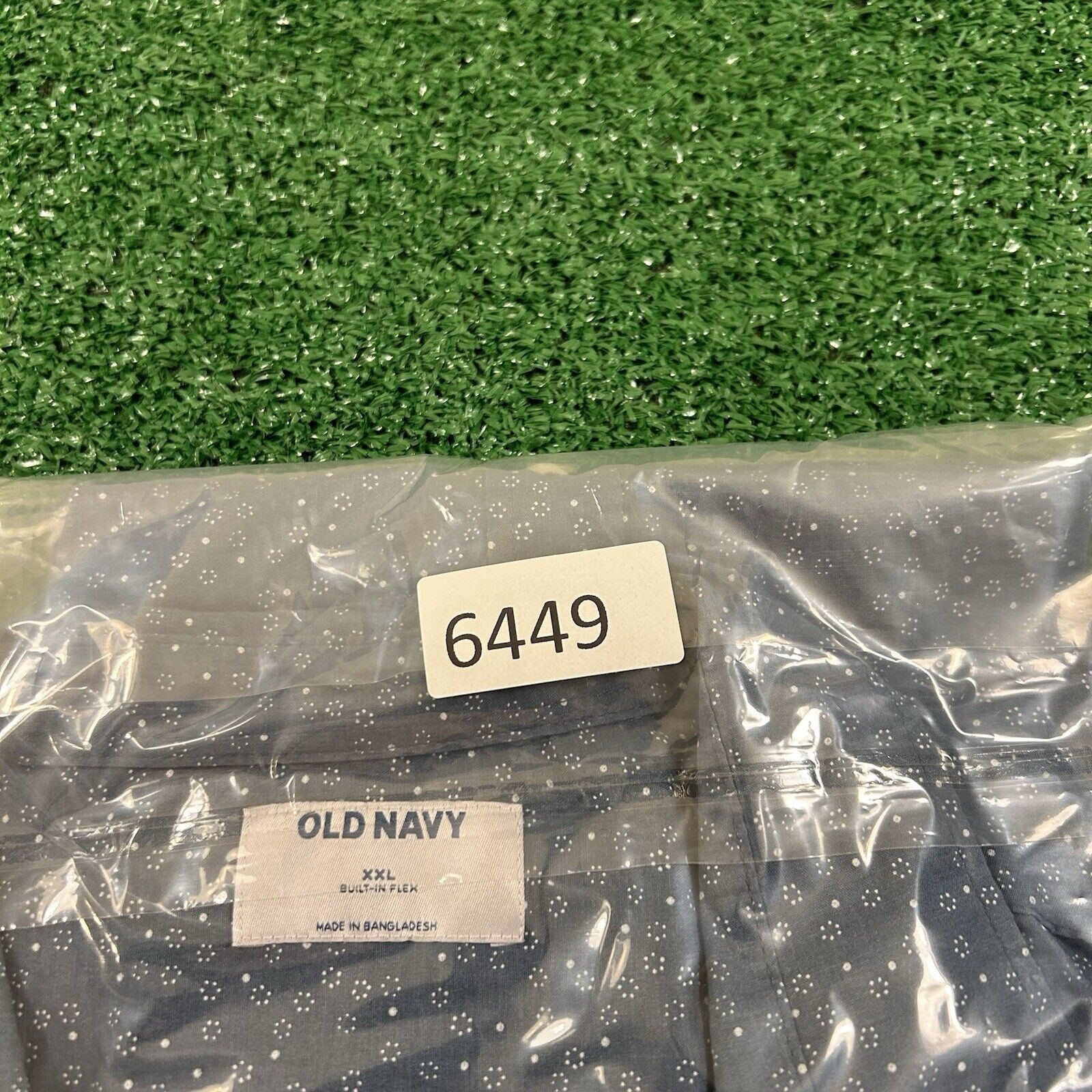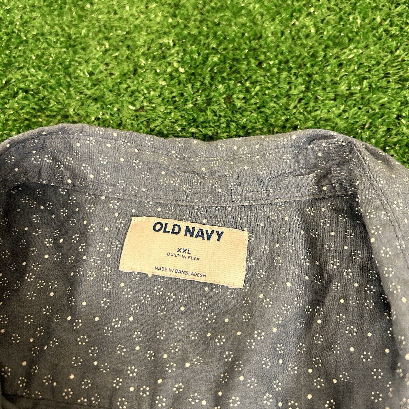 Old Navy Shirt Mens XXL 2XL Blue White Geometric Button Up Short Sleeve Flex