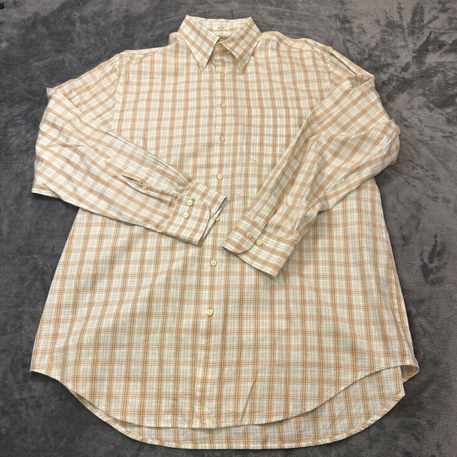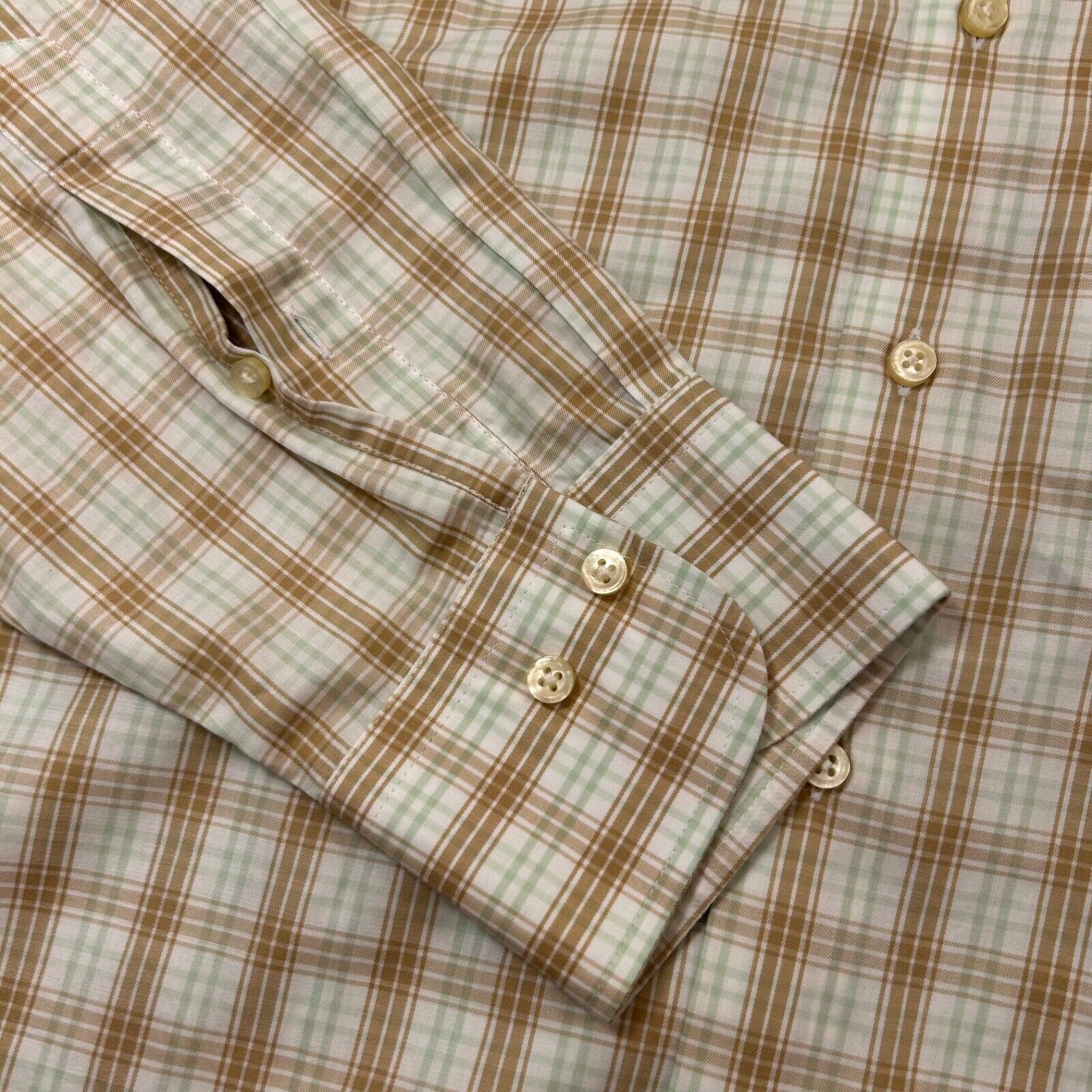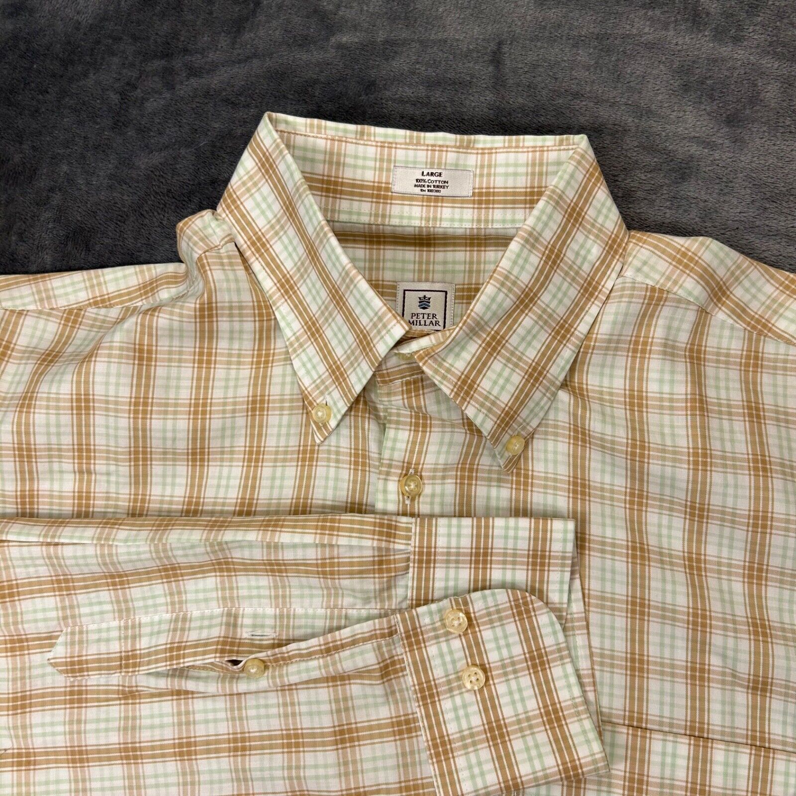 Peter Millar Shirt Mens Large Brown White Plaid Button Up Long Sleeve Casual
