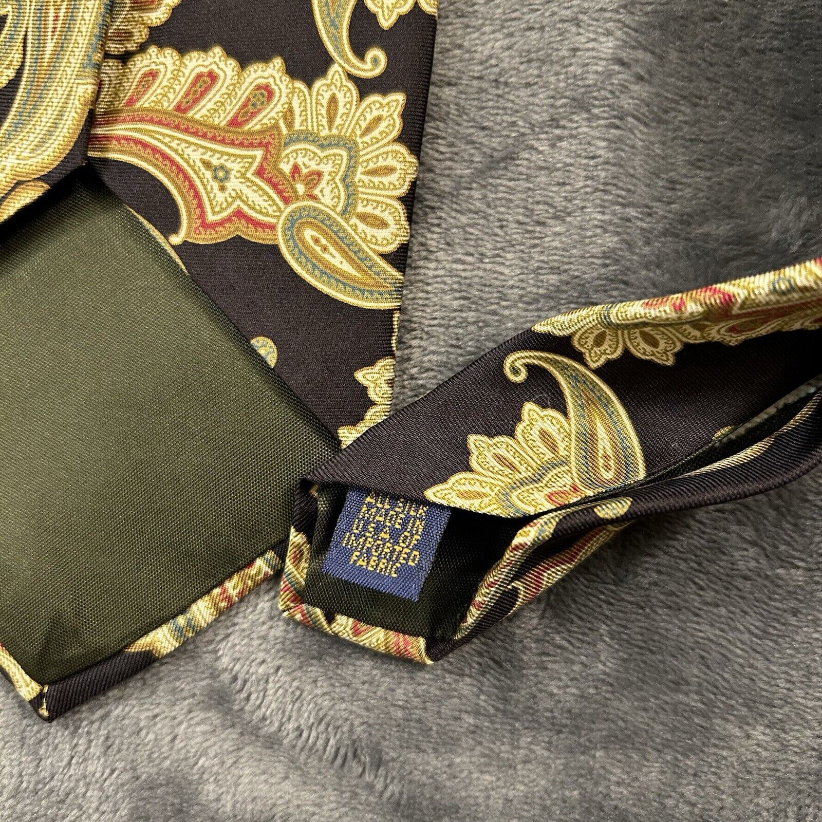 Ralph Lauren Chaps Tie Mens Black Green Paisley Silk 57” Necktie Formal Work