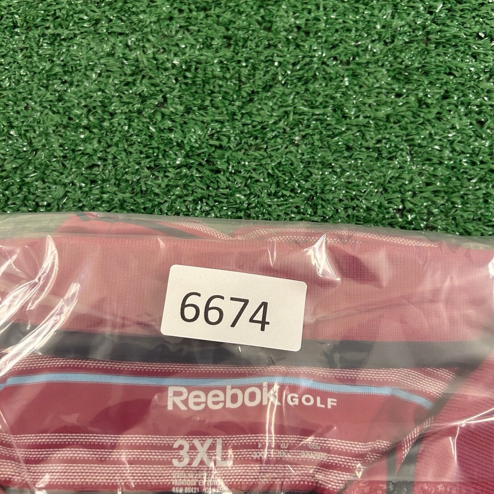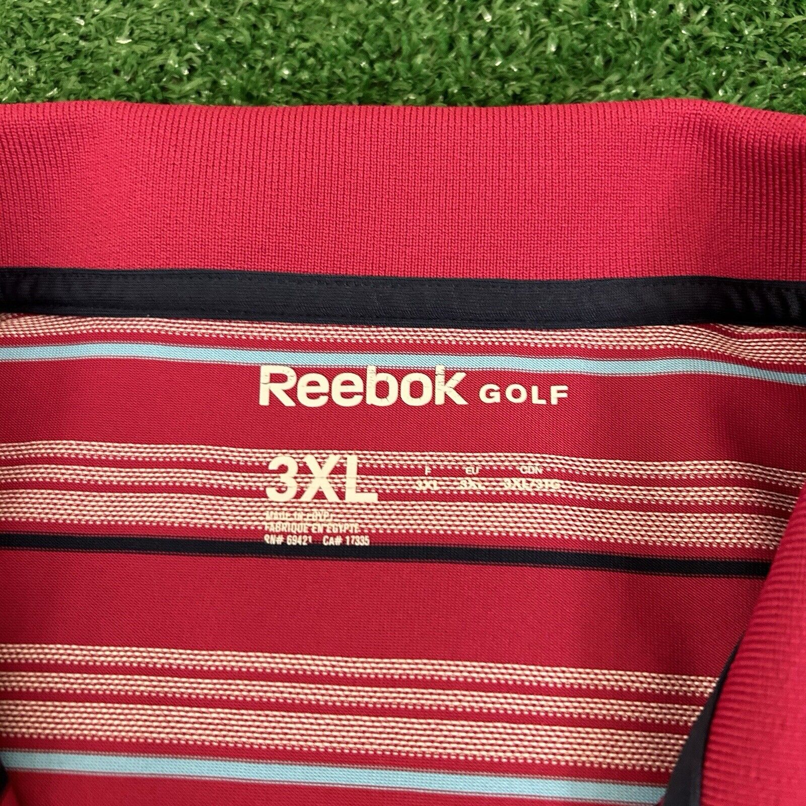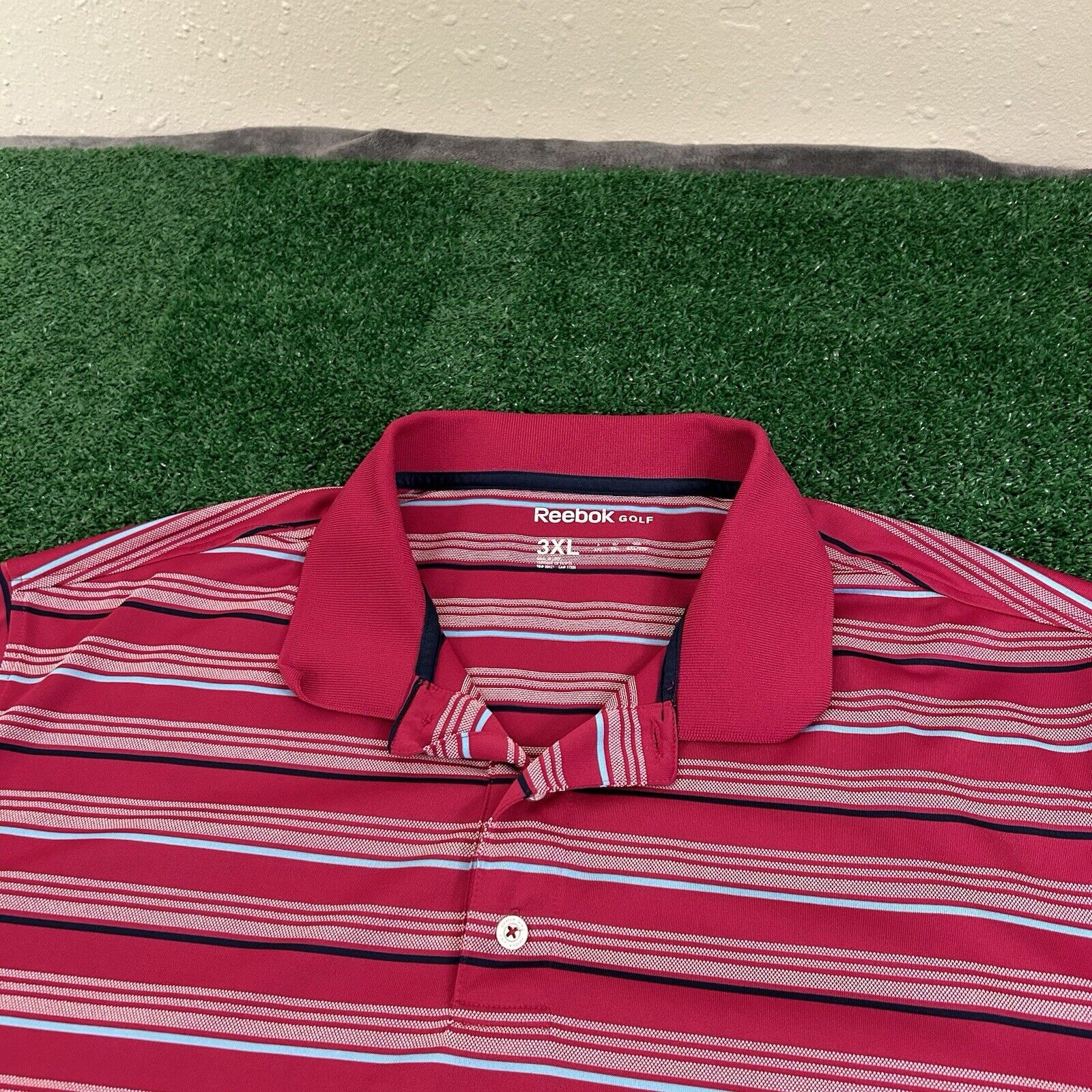 Reebok Polo Shirt Mens 3XL Pink/Red Blue Striped Short Sleeve Golf Athletic
