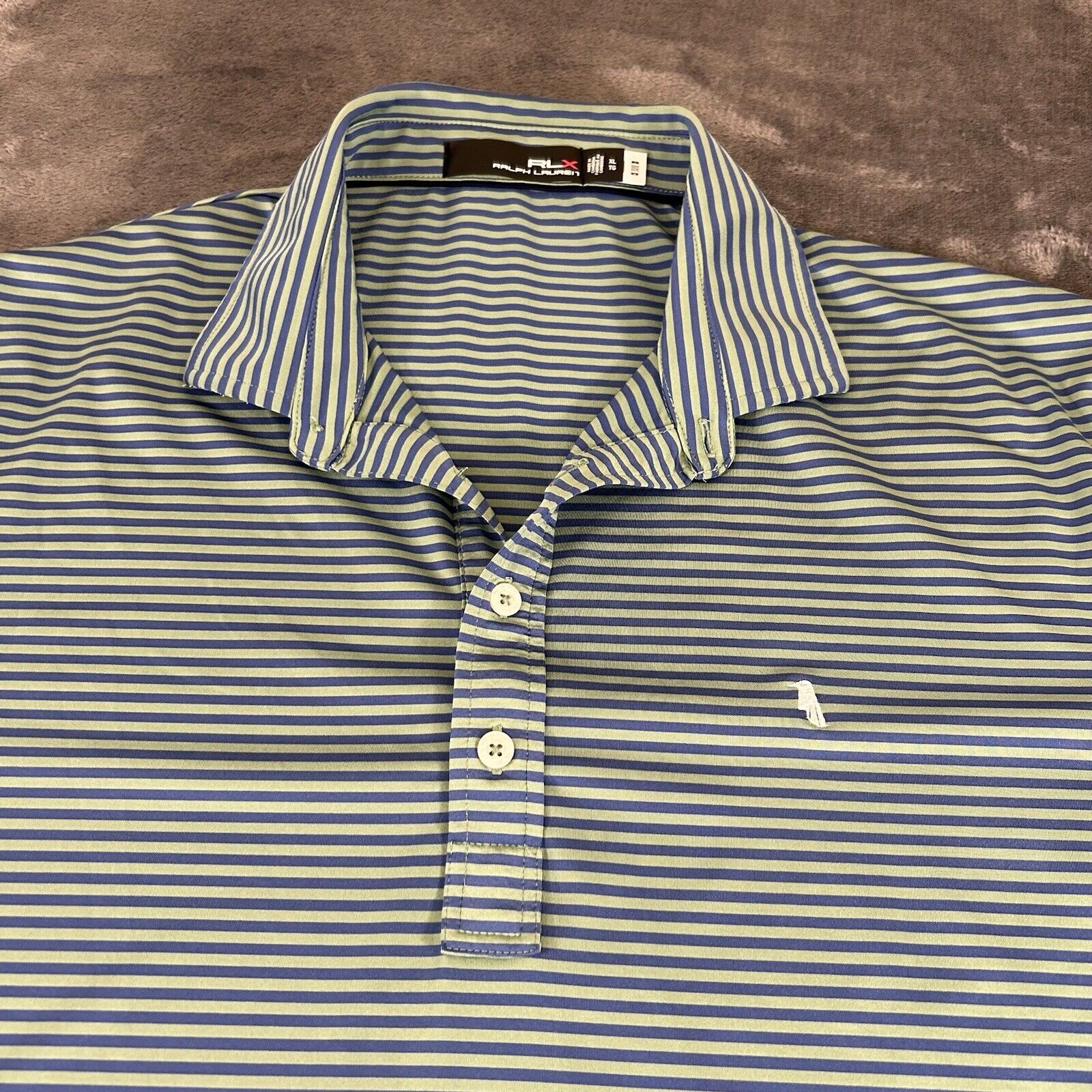 RLX Ralph Lauren Polo Shirt Mens Extra Large Green Blue Stripe Short Sleeve Golf