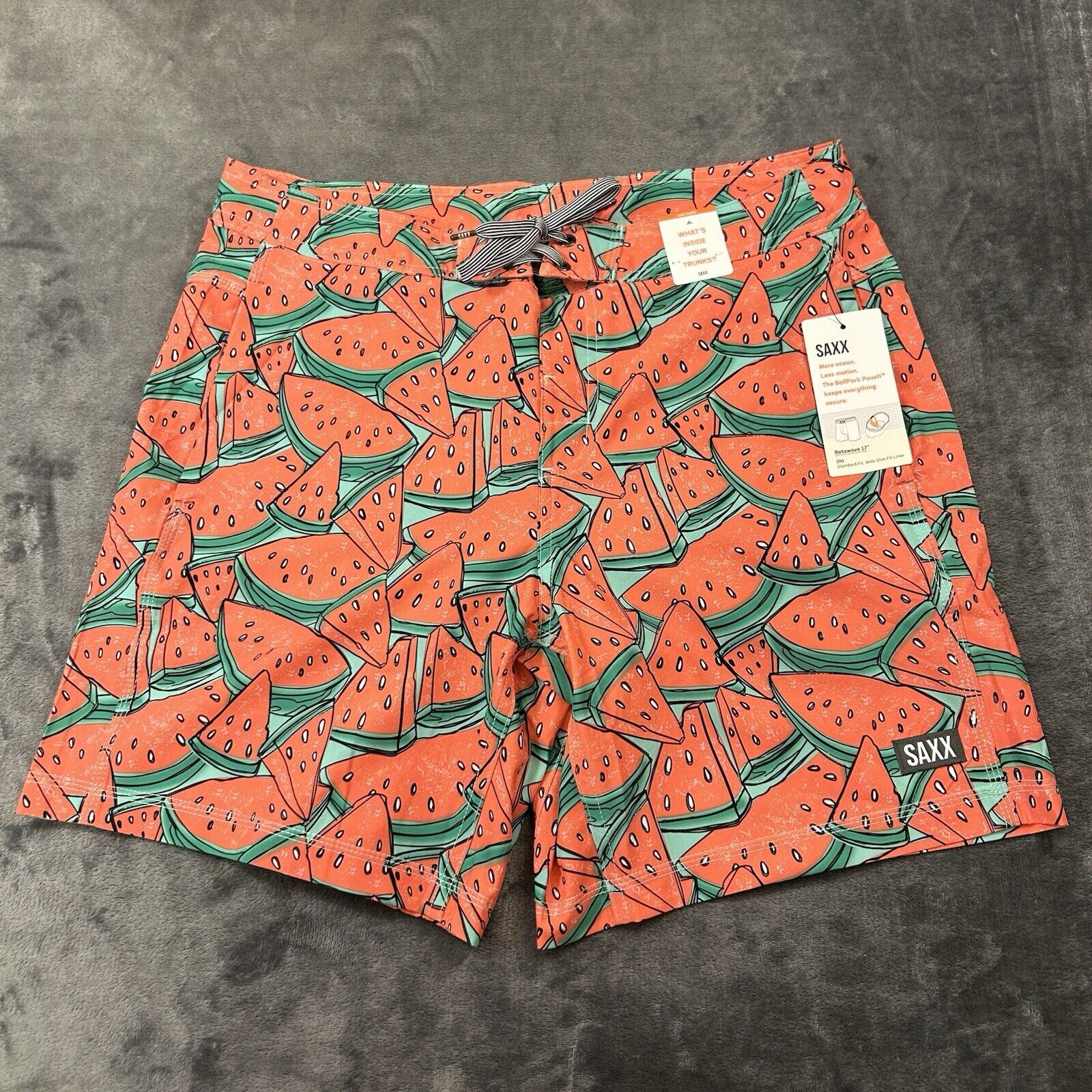 SAXX Betawave 2N1 Board Shorts Men 34" Red Watermelon AOP Drawstring Swim NEW