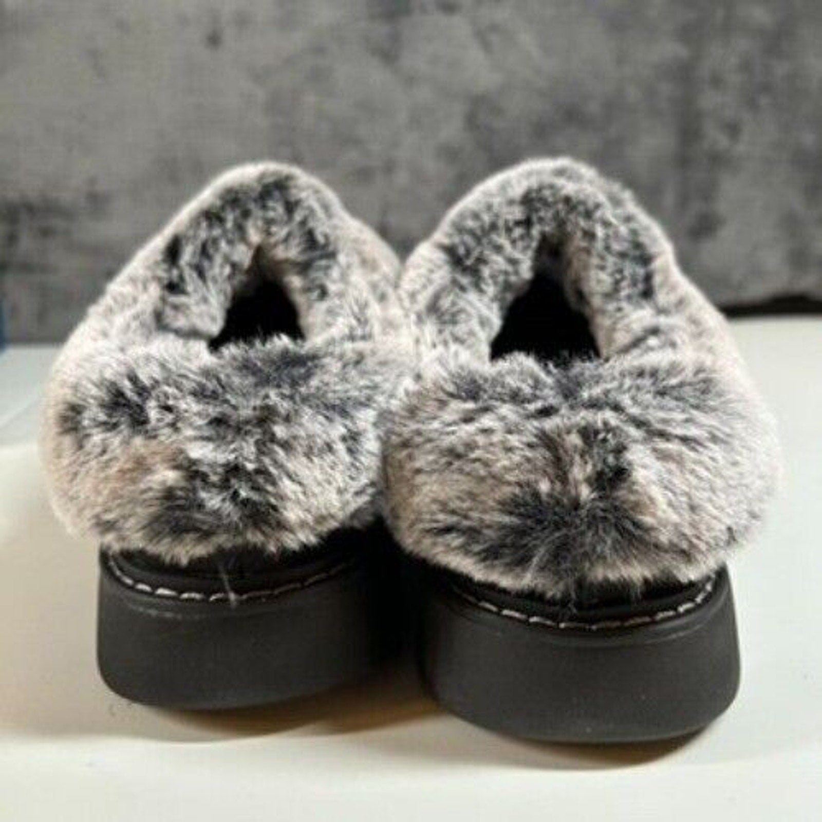 Features: Comfort, Cushioned, Faux Fur Trim, Slip-on