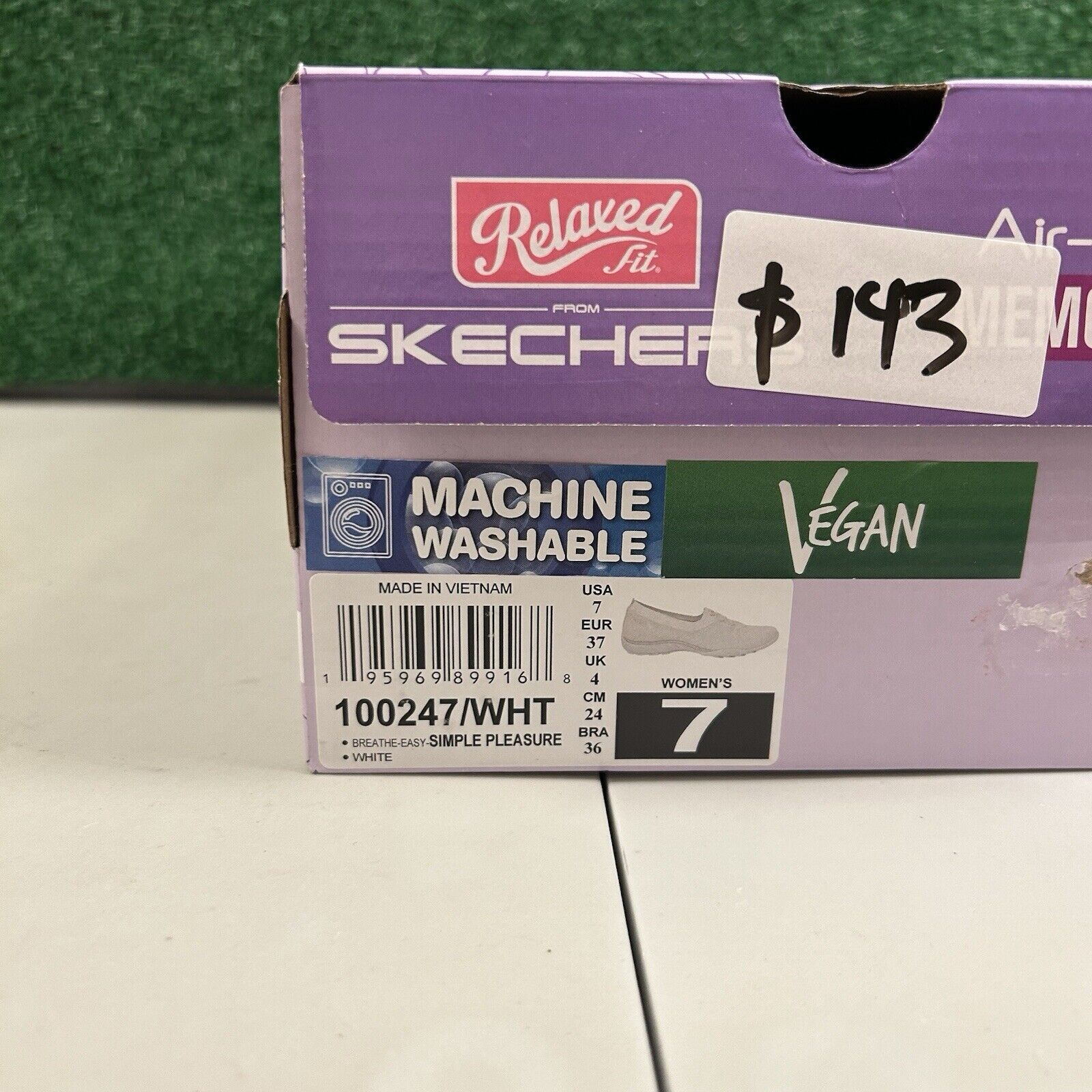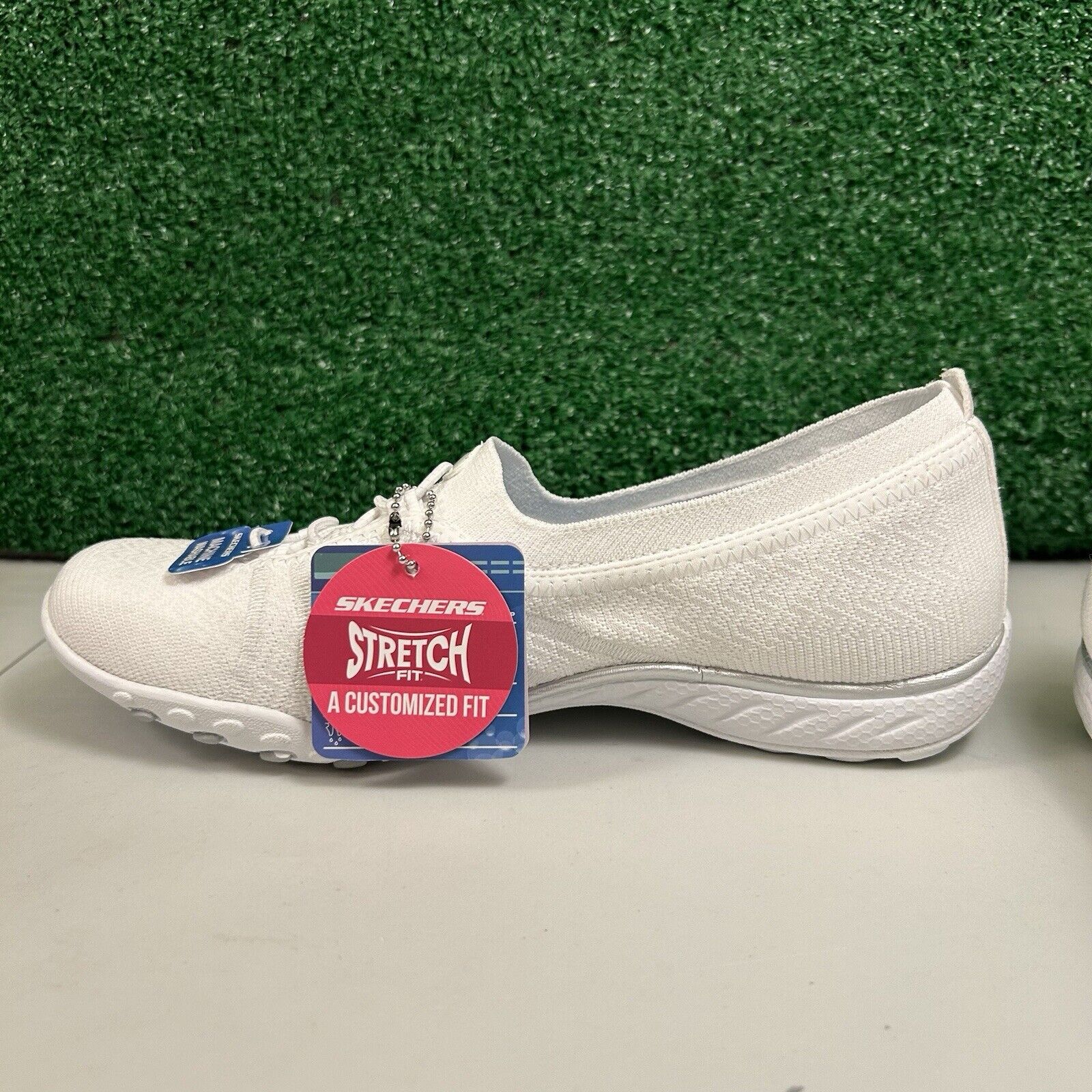 Skechers Breathe Easy Loafers Womens 7 M White Shoes Slip On Comfort Walking NEW