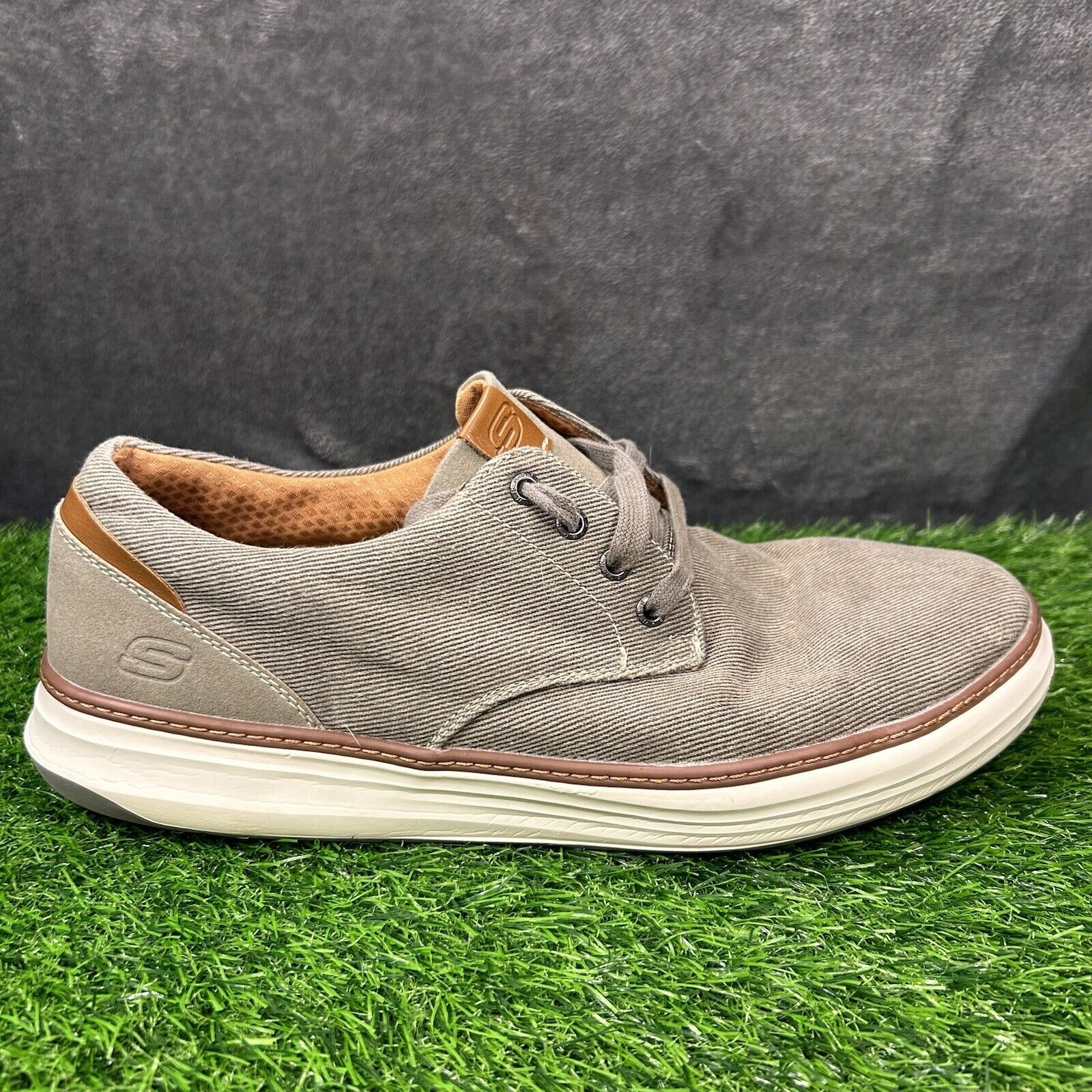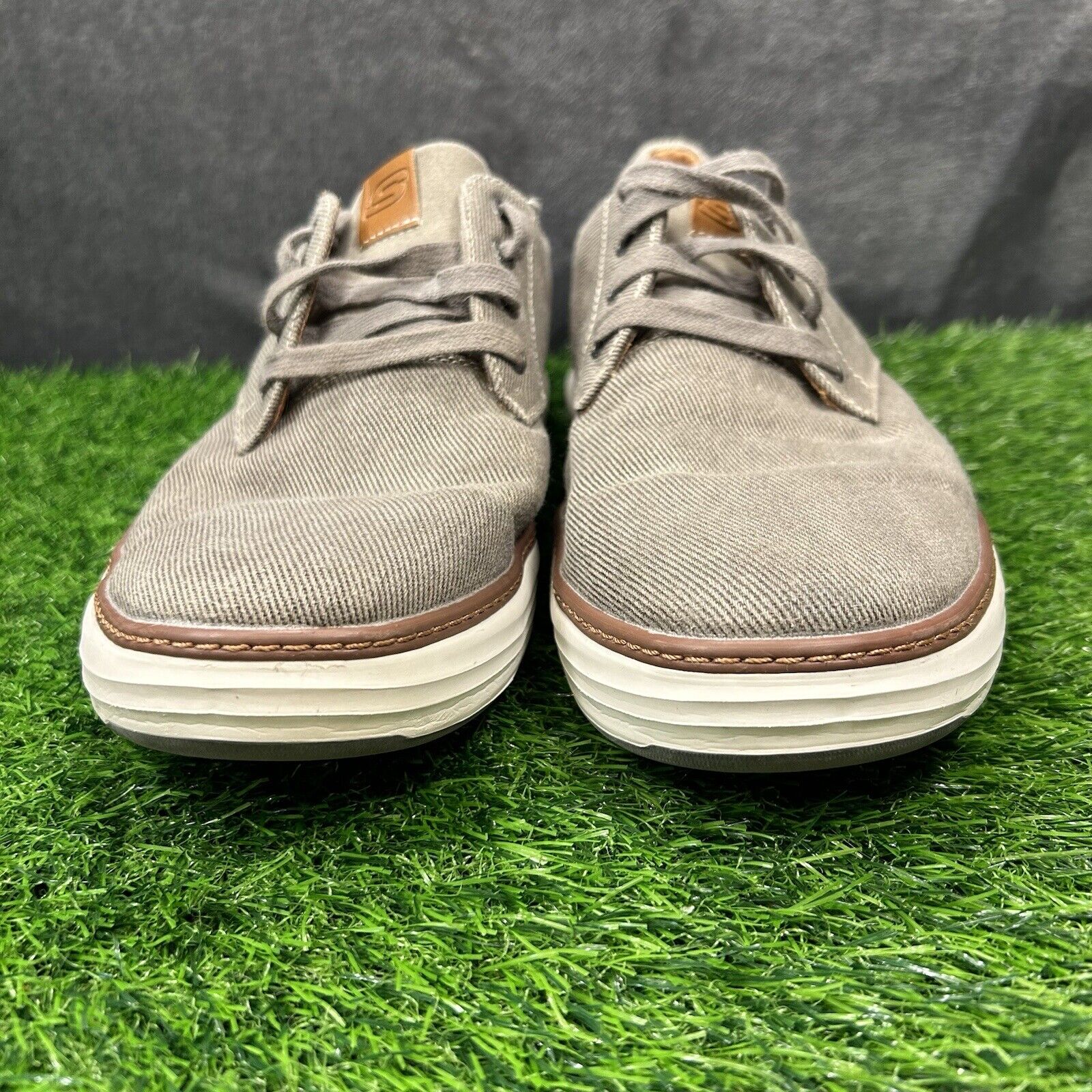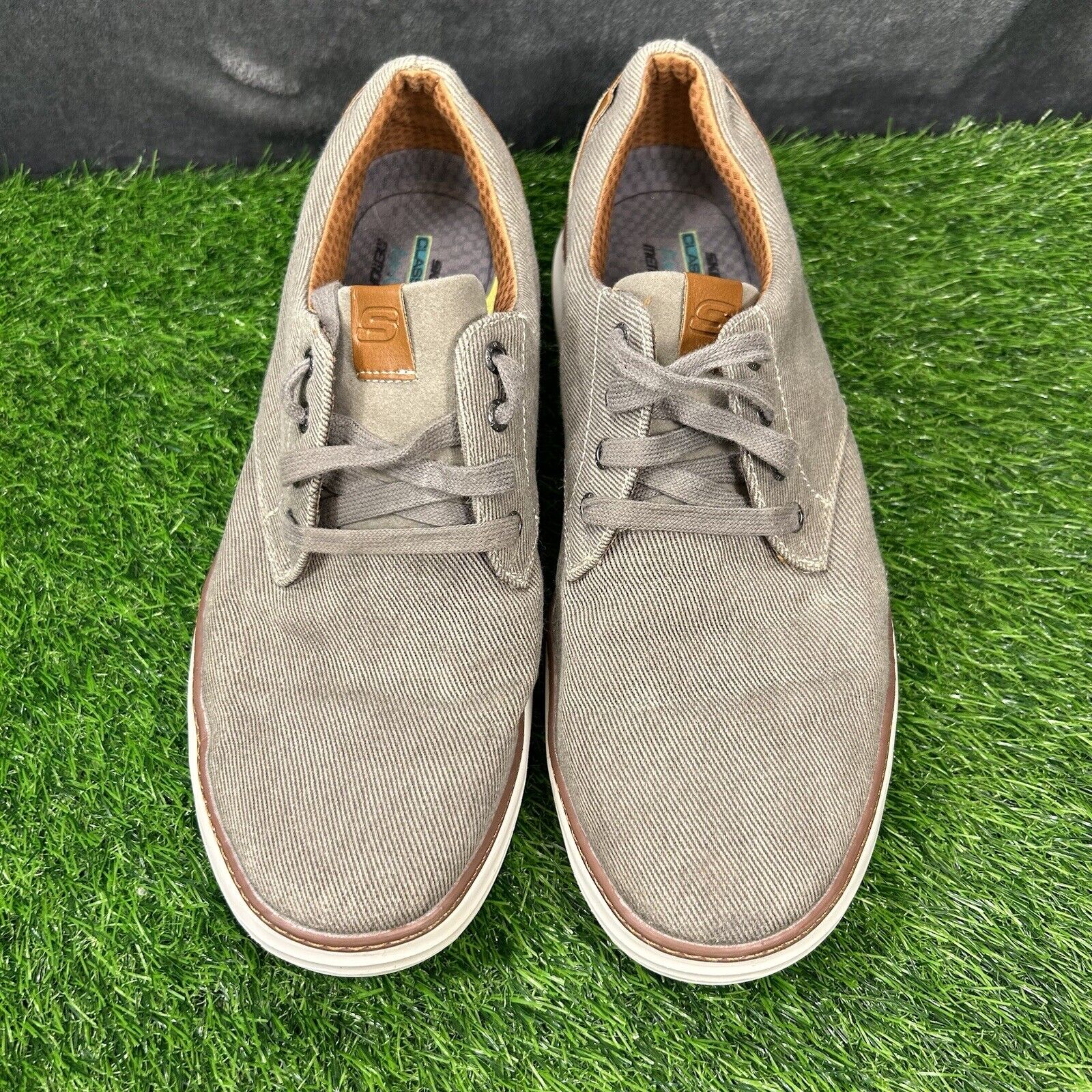 Skechers Oxfords Mens 13 Gray Brown Canvas Shoes Casual Comfort Lace Up Moreno