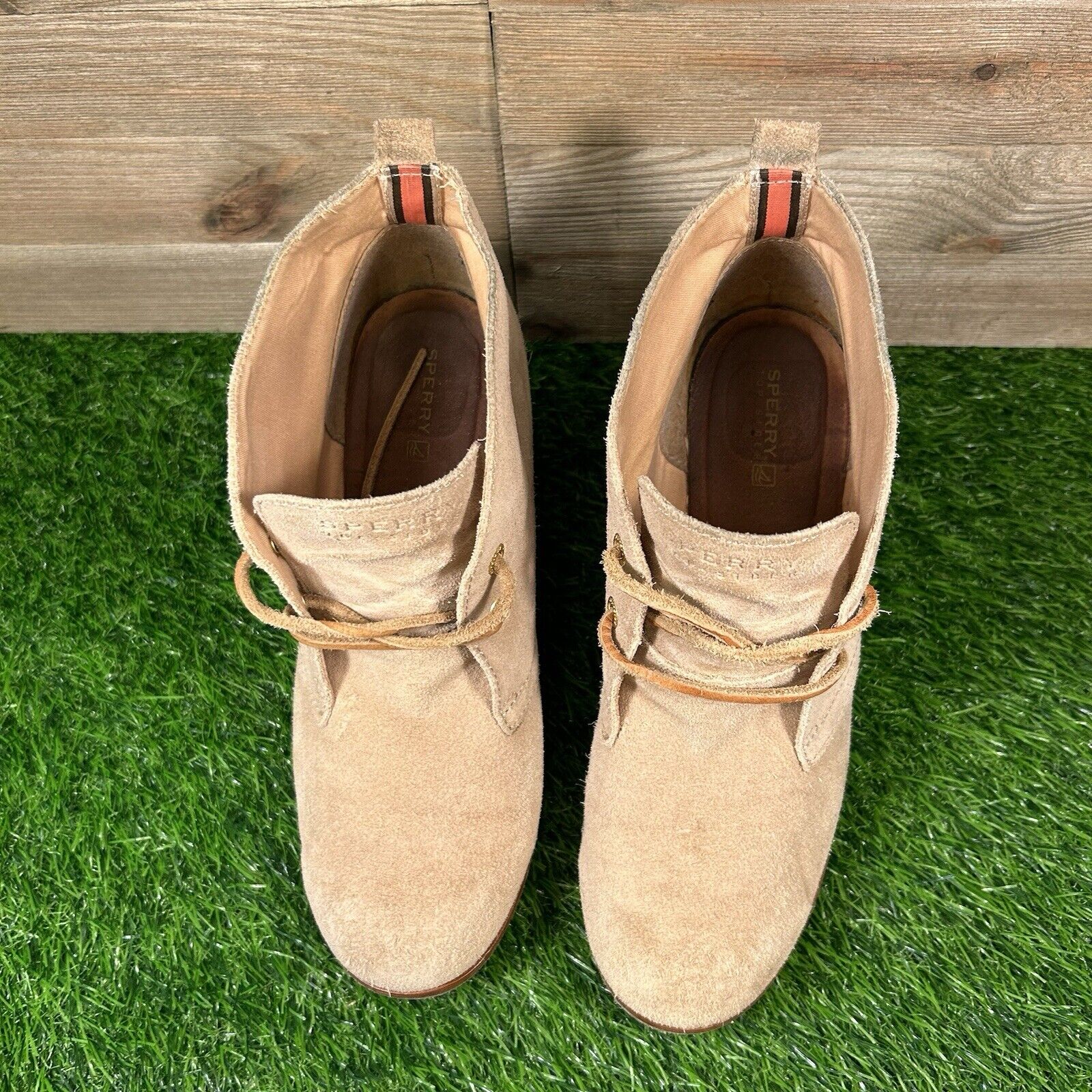 Sperry Harlow Boots Womens 8 M Brown Suede Leather Ankle Booties Casual Wedge