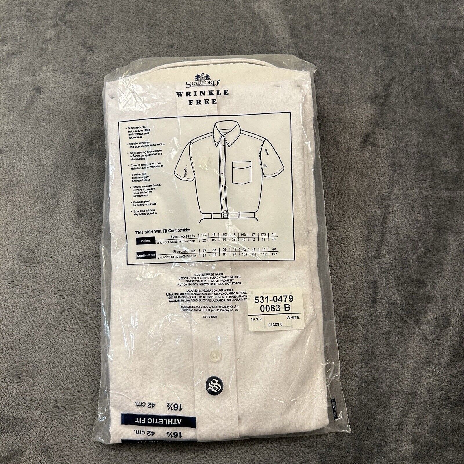 Stafford Shirt Mens 16.5 White Button Up Short Sleeve Athletic Fit Casual New