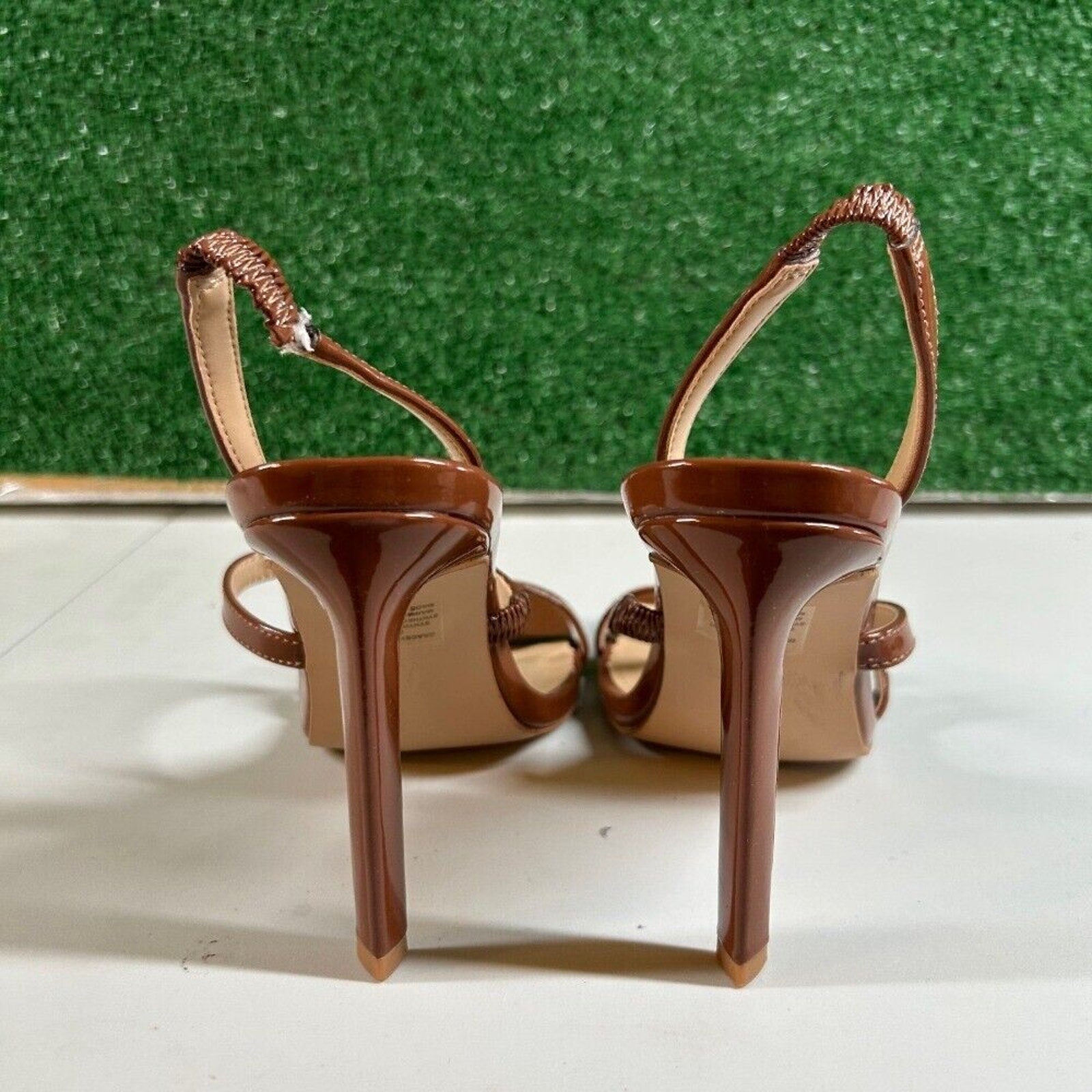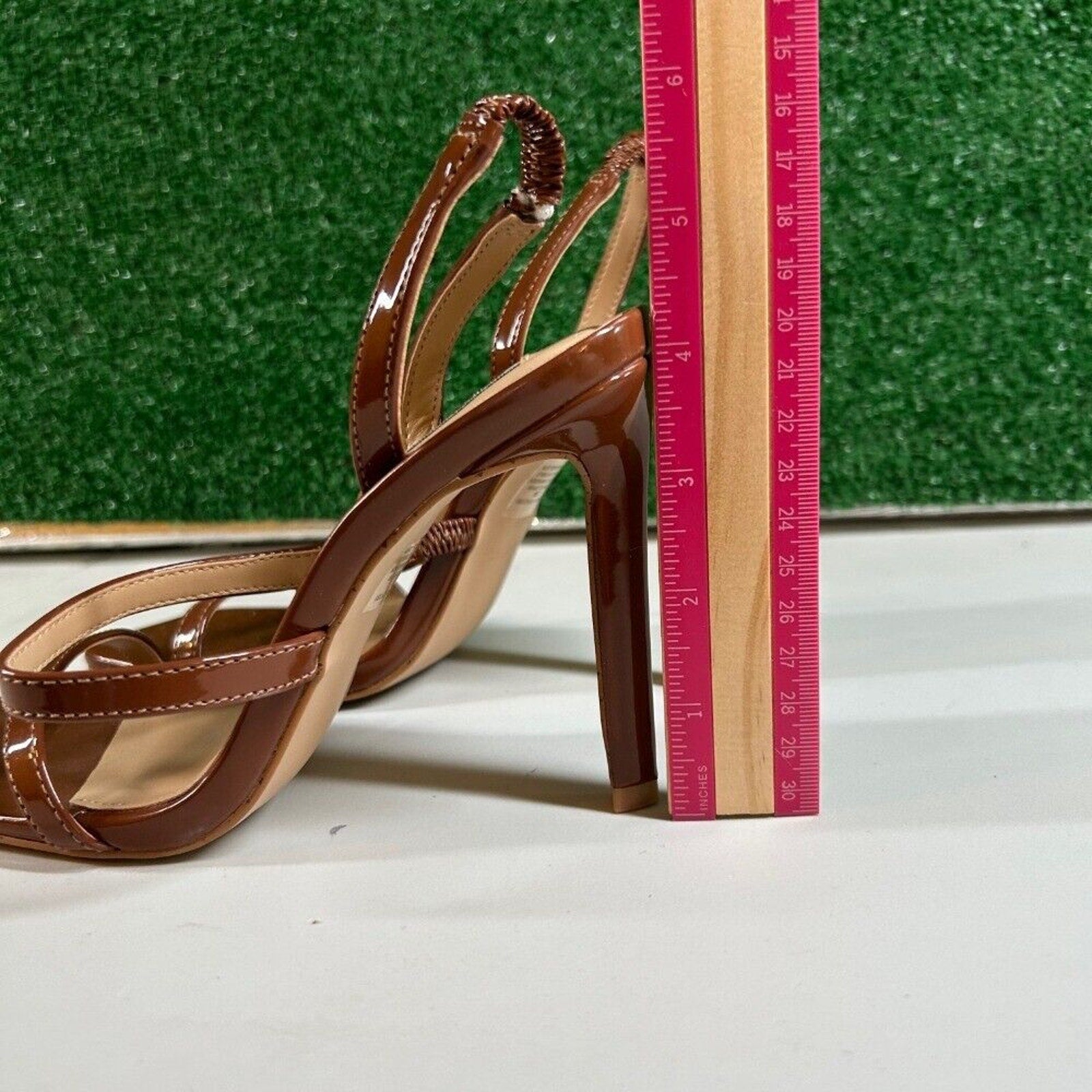 Keywords: Steve Madden, heeled sandals, brown heels, square toe heels, strappy heels, slingback heels, patent leather heels, women's heels, party heels, cocktail heels, dressy heels, stiletto heels, high heels