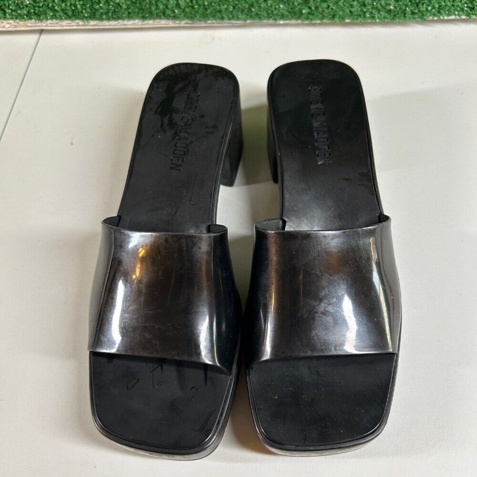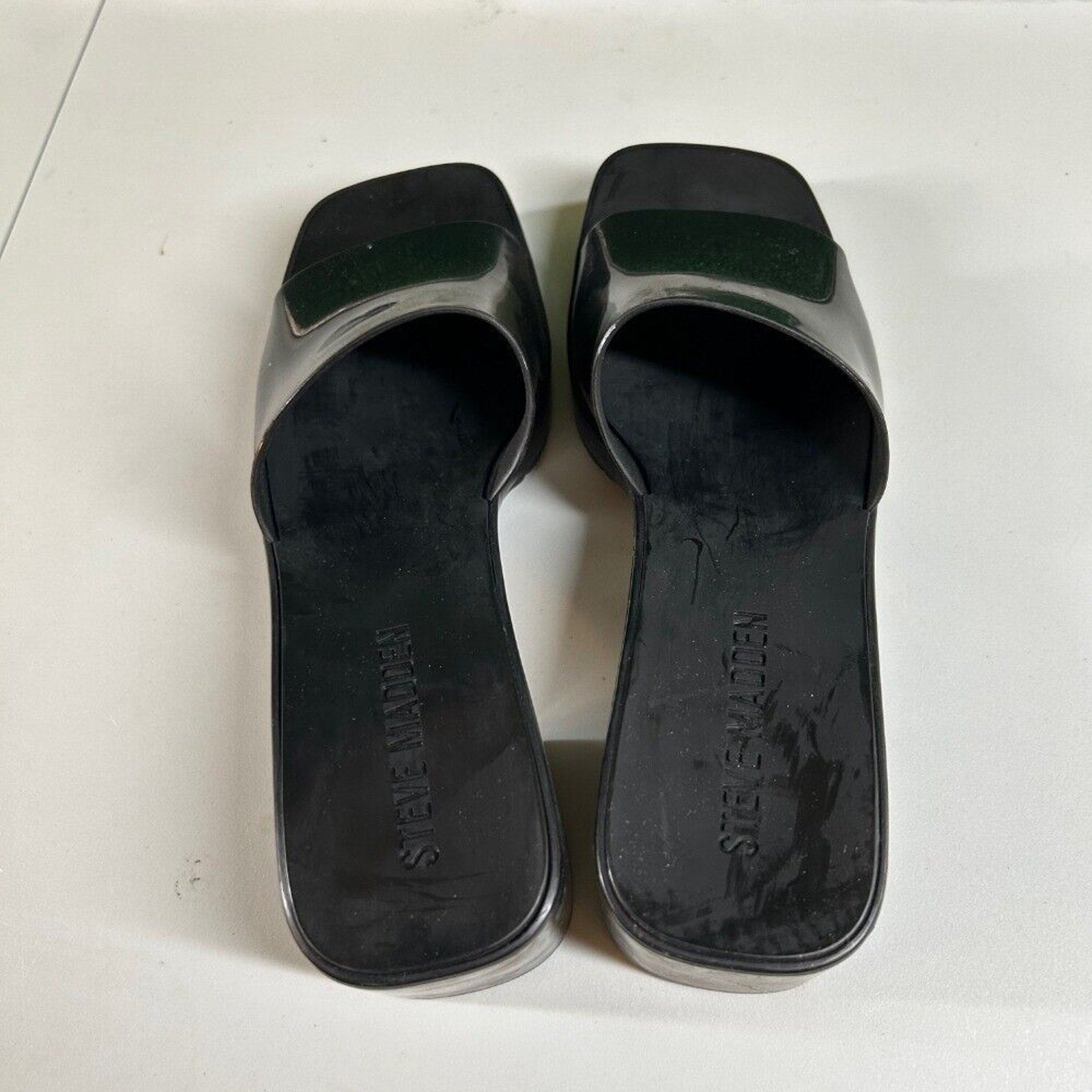 Keywords: Steve Madden, platform sandals, slide sandals, chunky heel, black sandals, Y2K style, women's shoes, block heel, slip on sandals, retro sandals, vintage inspired, summer shoes, casual sandals