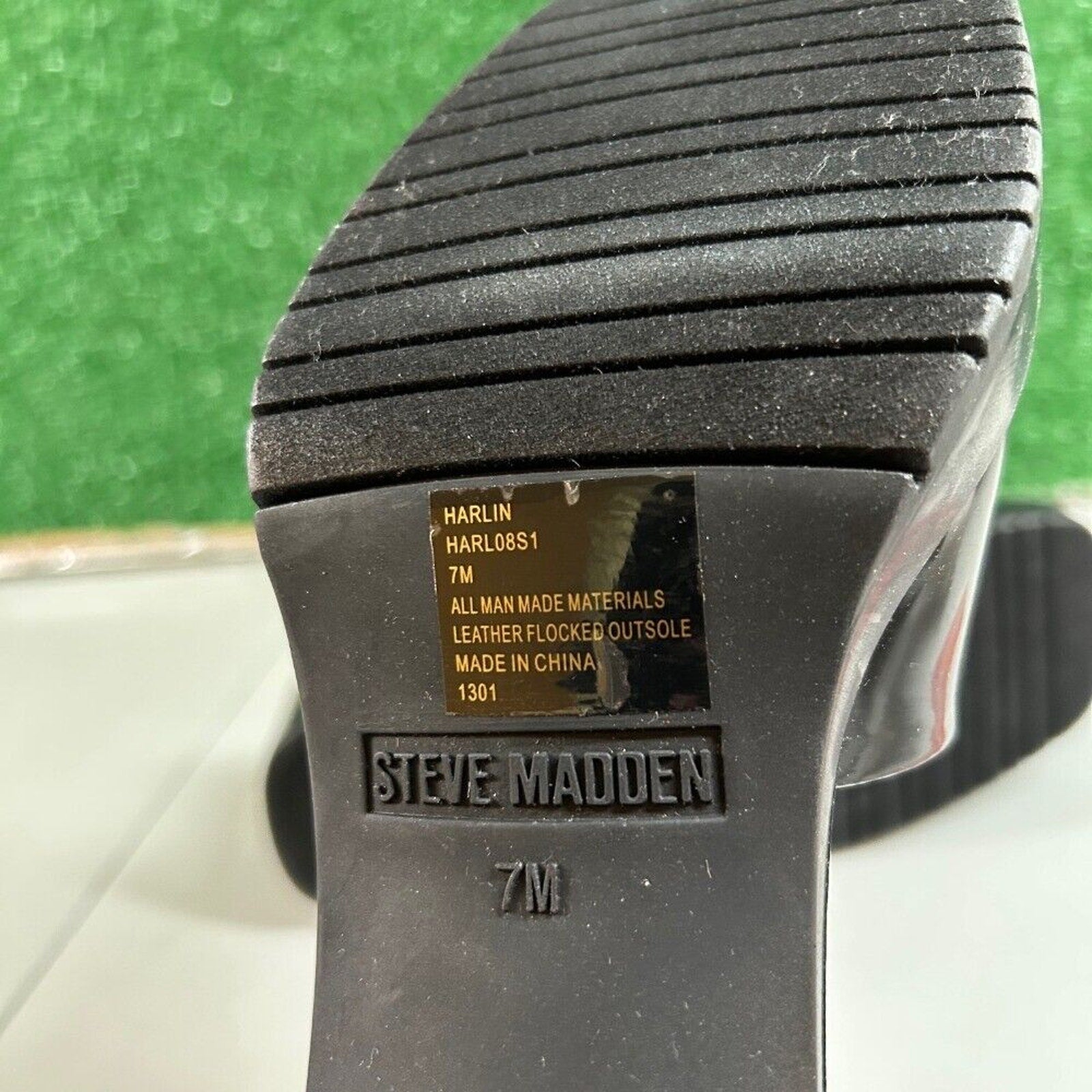 Steve Madden Harlin Platform Sandals Block Heel Slide On Mule Black Womens 7M