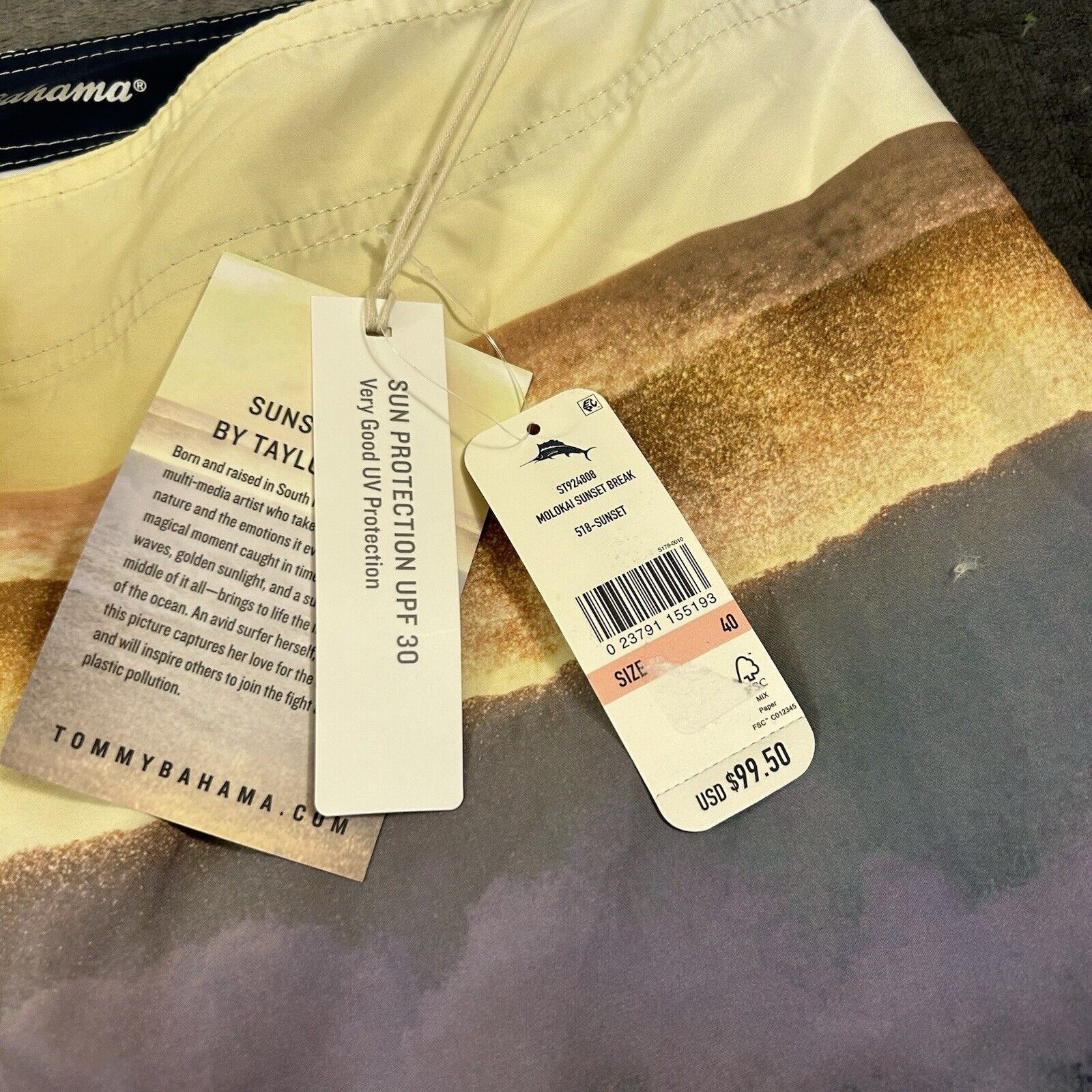 Tommy Bahama Board Shorts Mens 40" Yellow Blue Molokai Sunset Break Swim NEW