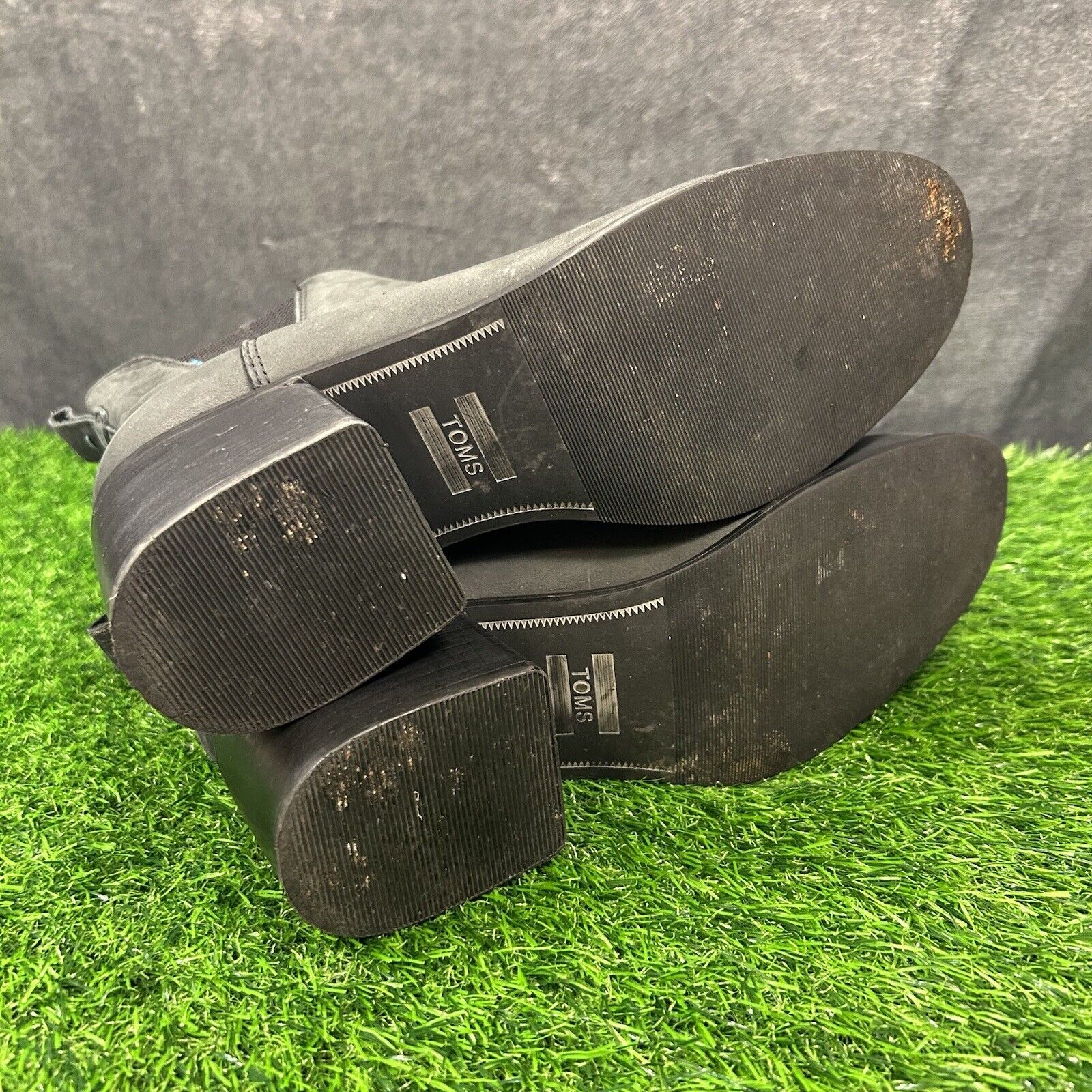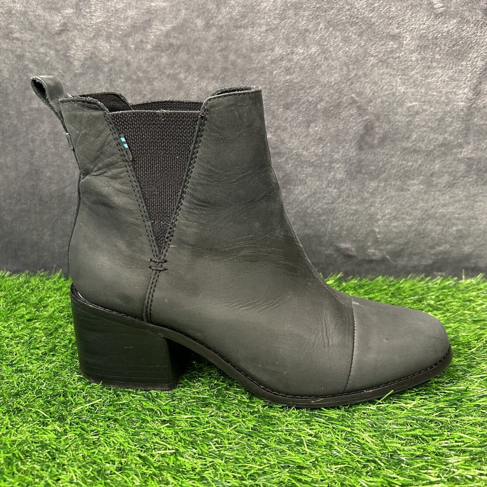 Toms Esme Boots Womens 9.5 Black Leather Ankle Booties Casual Block Heel Chelsea