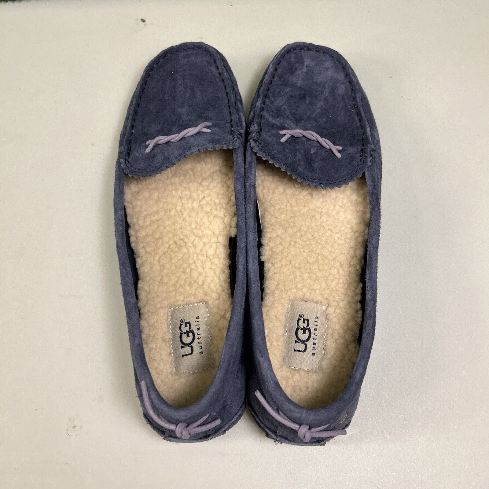 Ugg Ansley Moccasins Womens 10 M Blue Suede Slippers Casual Comfort Fur Warm