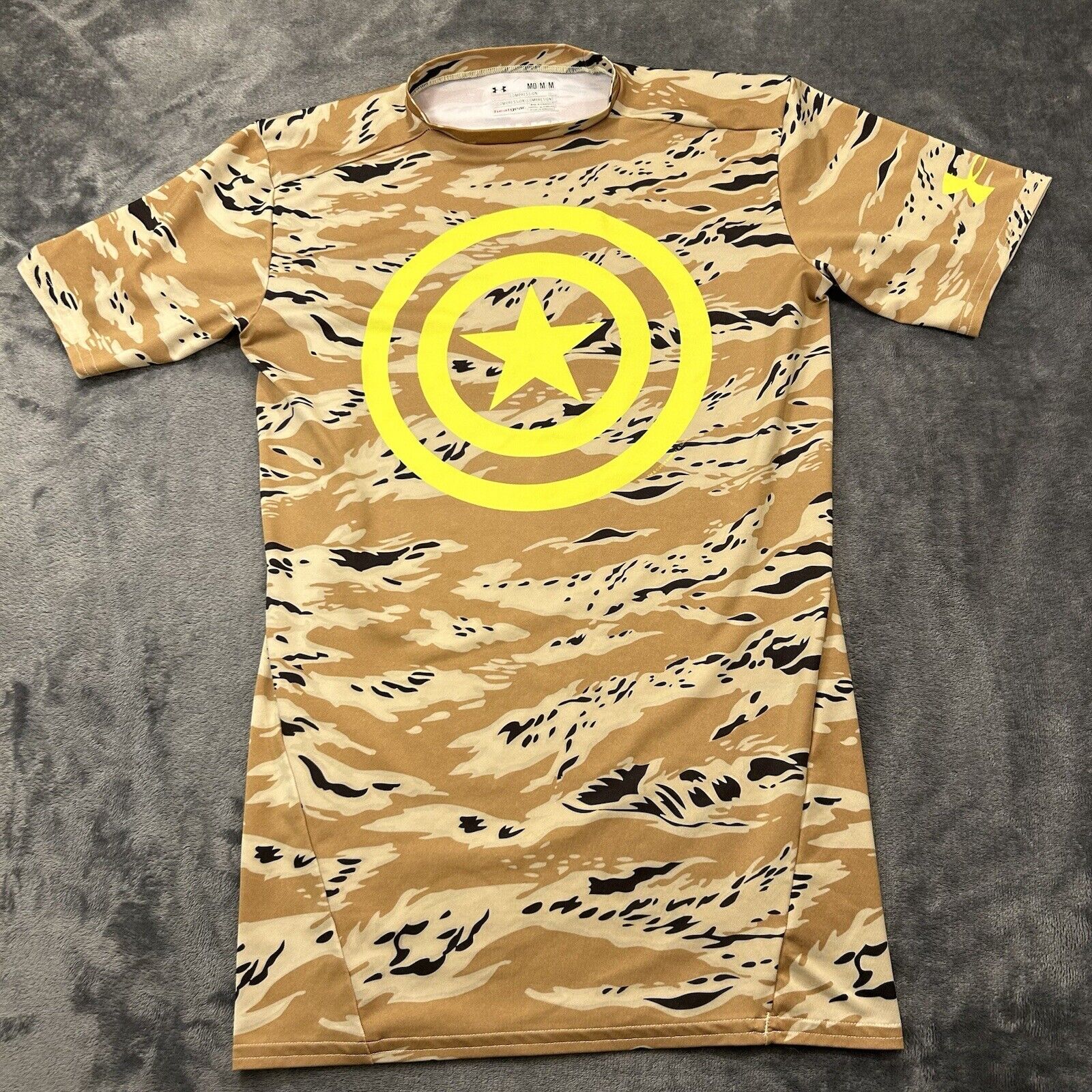 Under Armour Marvel Shirt Mens Medium Brown Black Camo Compression Heatgear Gym