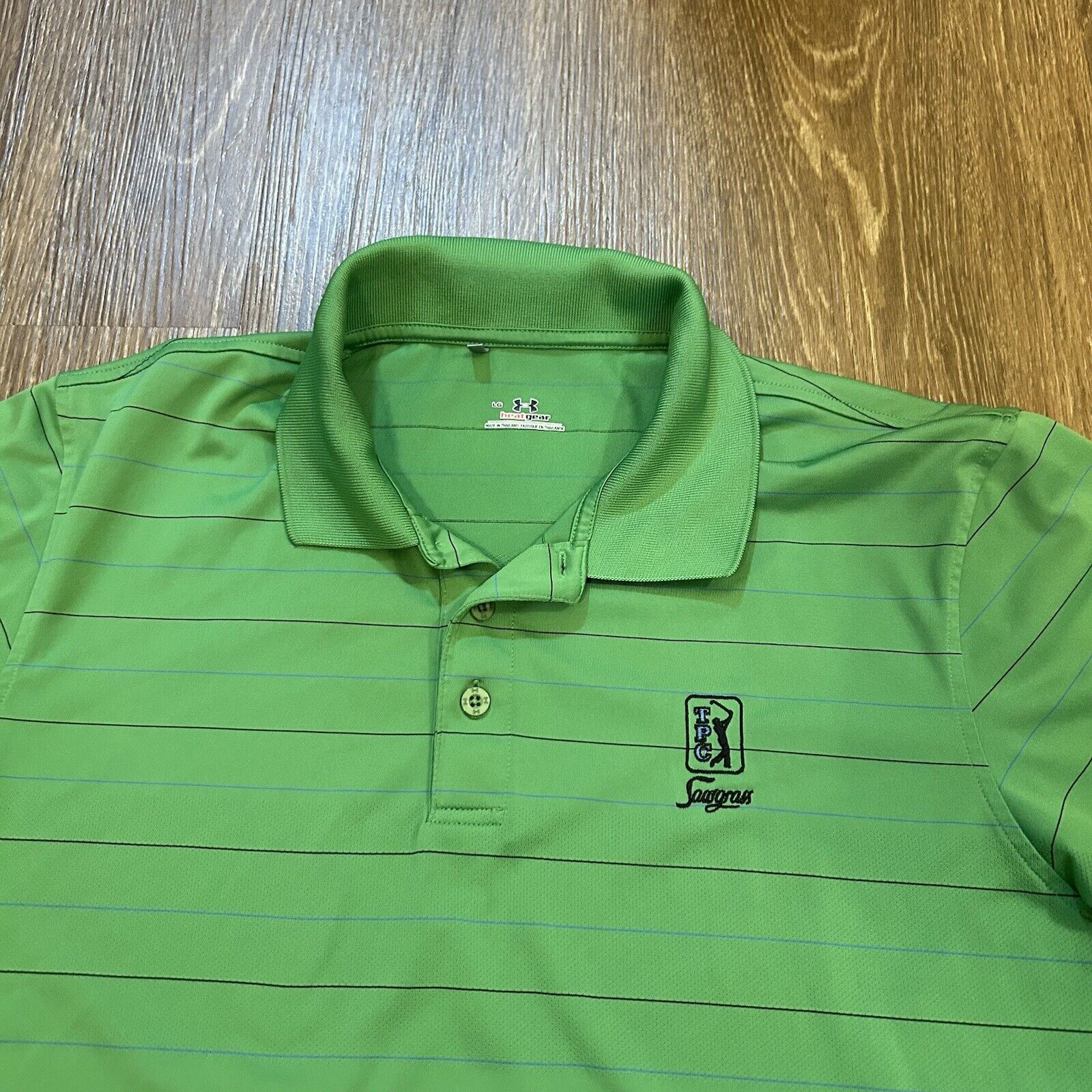 Under Armour Polo Shirt Mens Large Green Striped Heatgear TPC Golf Athletic