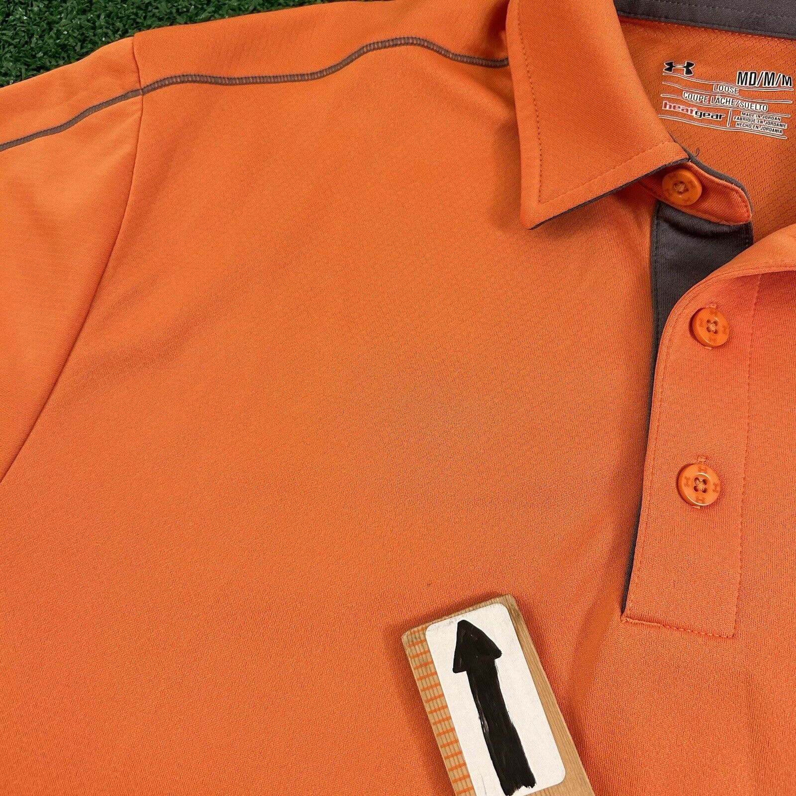 Under Armour Polo Shirt Mens Medium Orange Short Sleeve Golf Athletic Heatgear