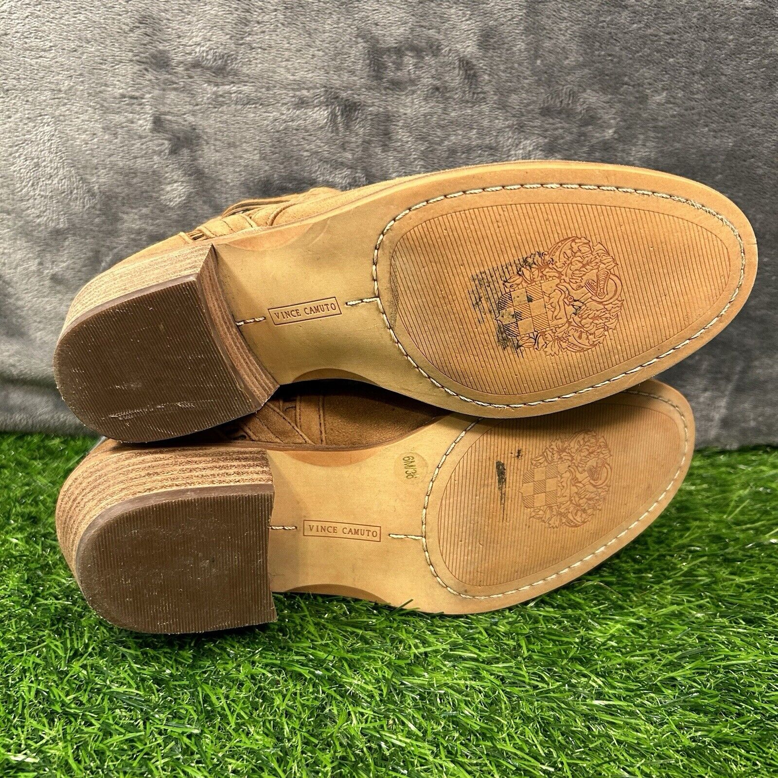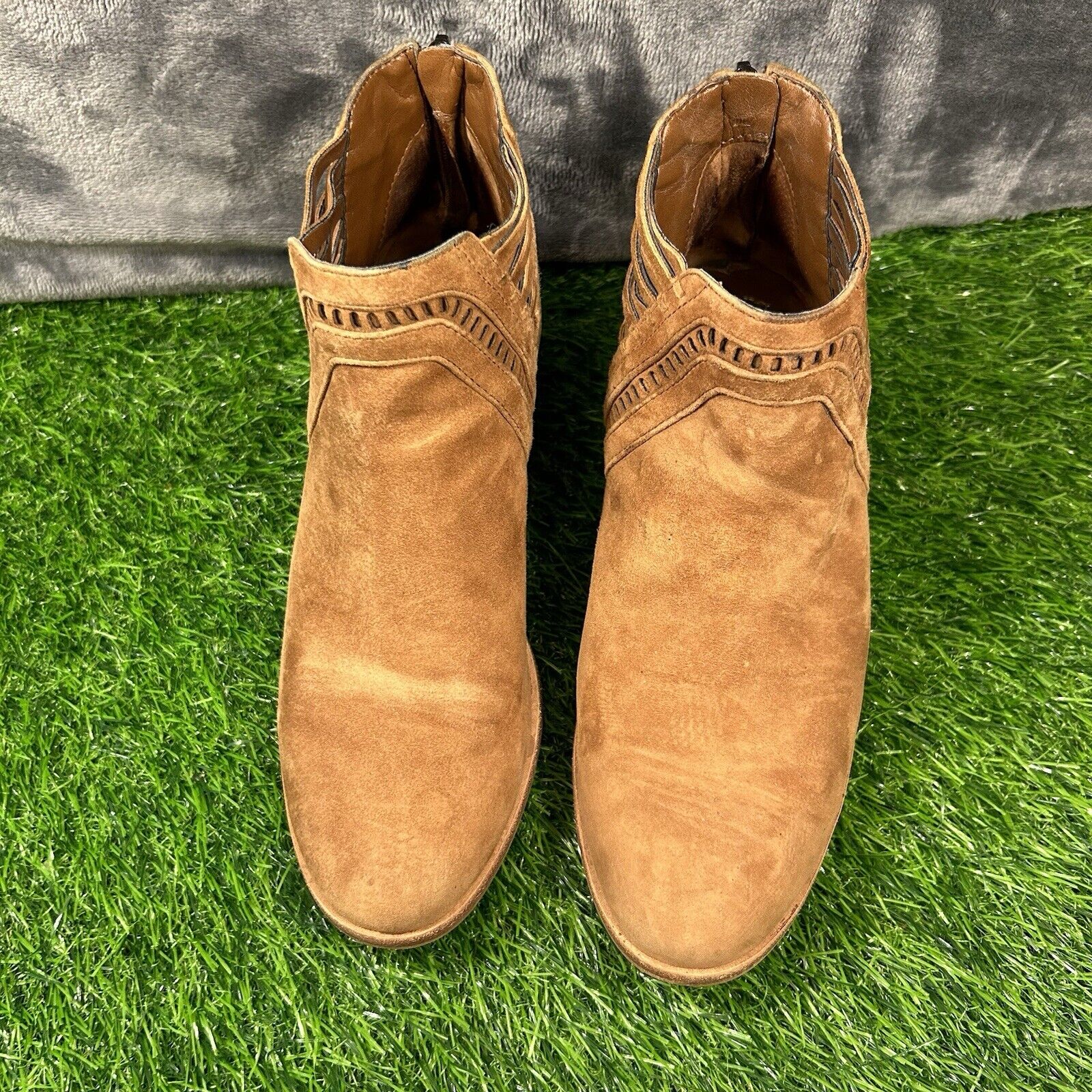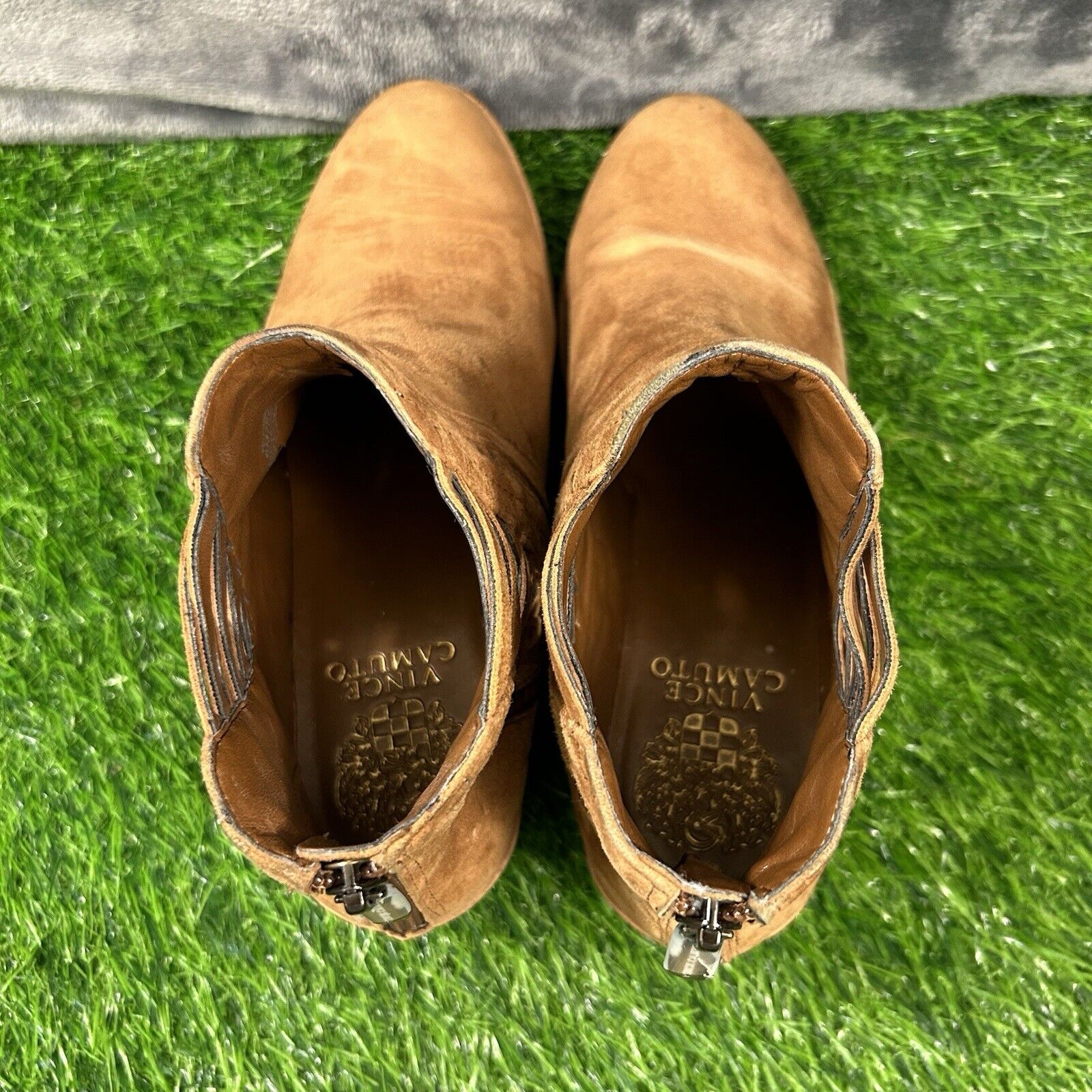 Vince Camuto Pimmy Boots Womens 6 M Brown Leather Ankle Booties Zip Up Heeled