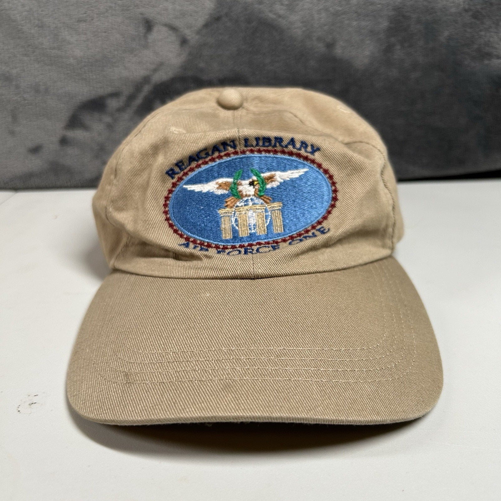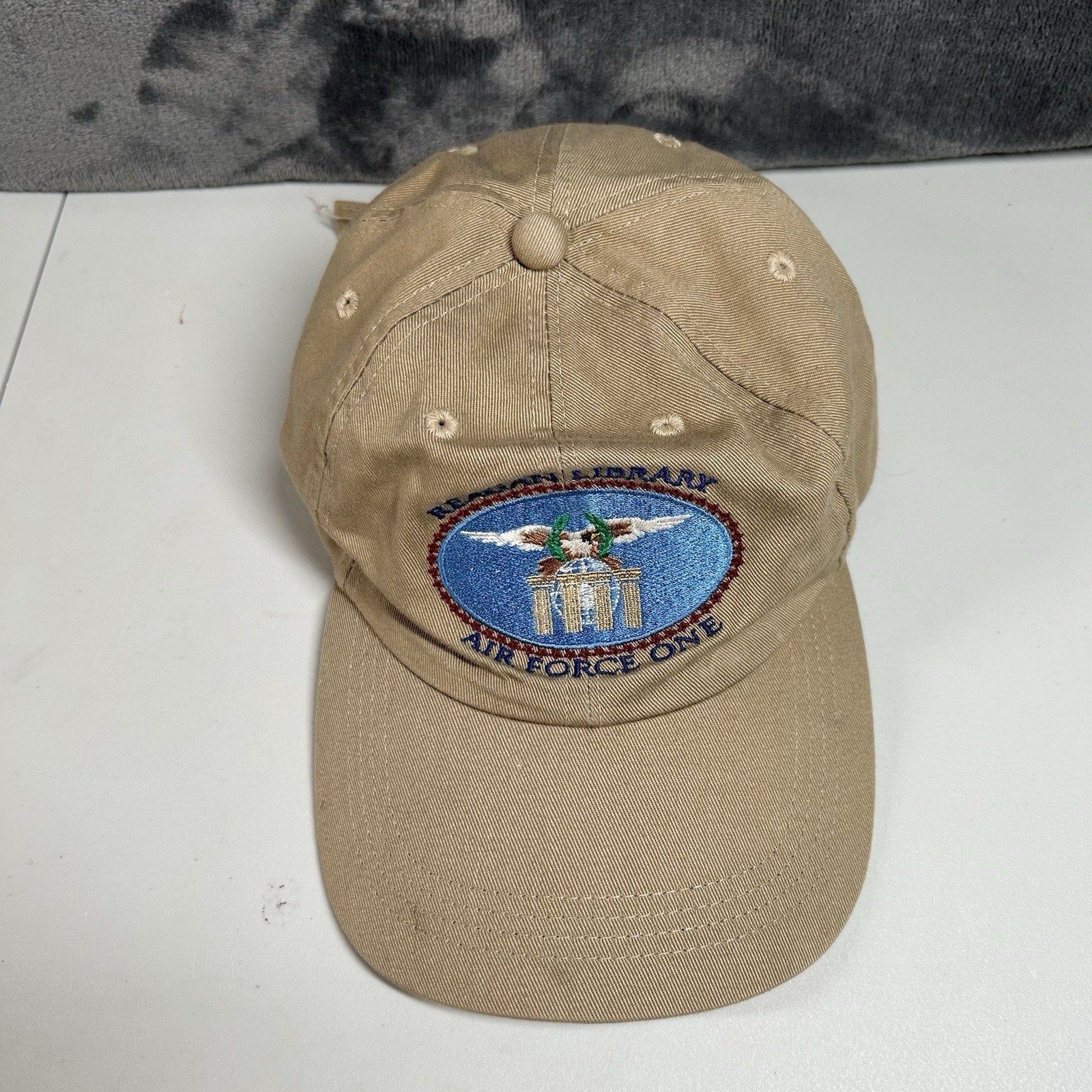 Vintage Reagan Library Air Force One Hat Cap Mens Tan Strap Back Adjustable