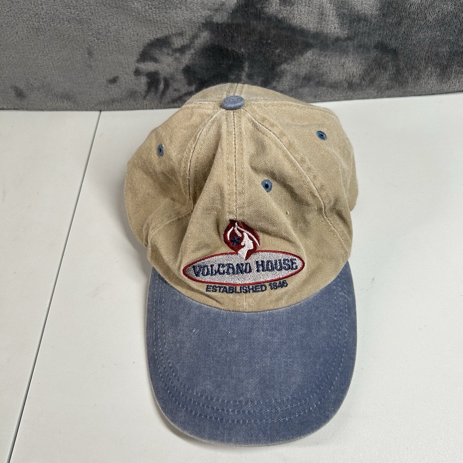 Volcano House Baseball Hat Cap Mens Strap Back Brown Blue Vintage Adjustable
