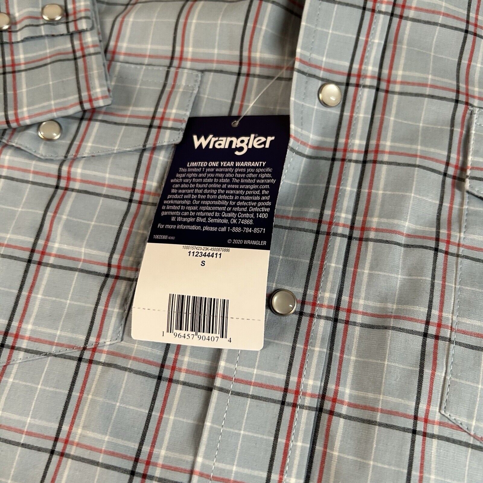 Wrangler Pearl Snap Shirt Mens Small Blue Red Plaid Cowboy Long Sleeve New