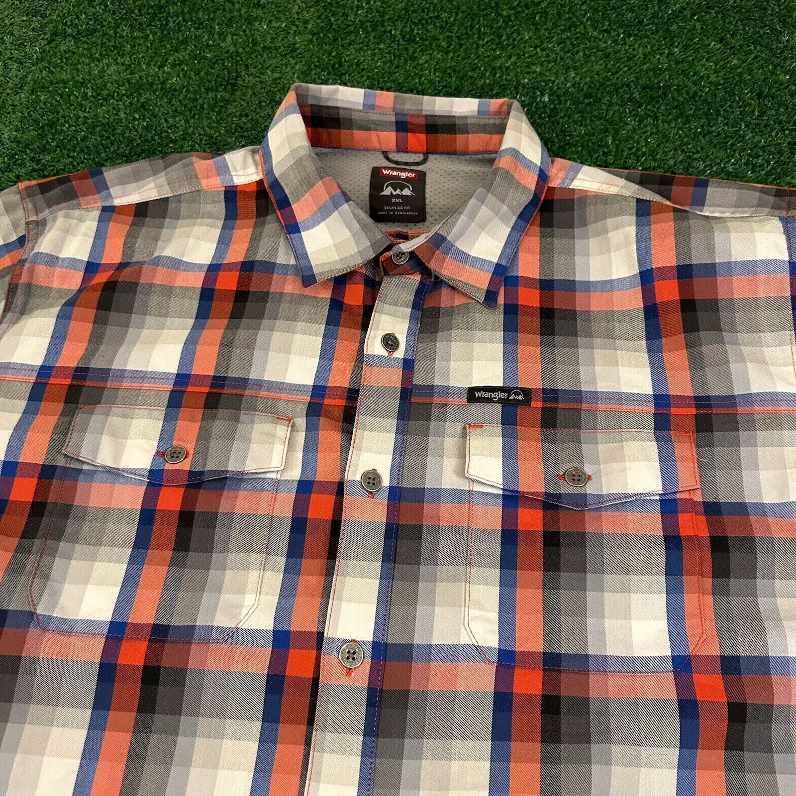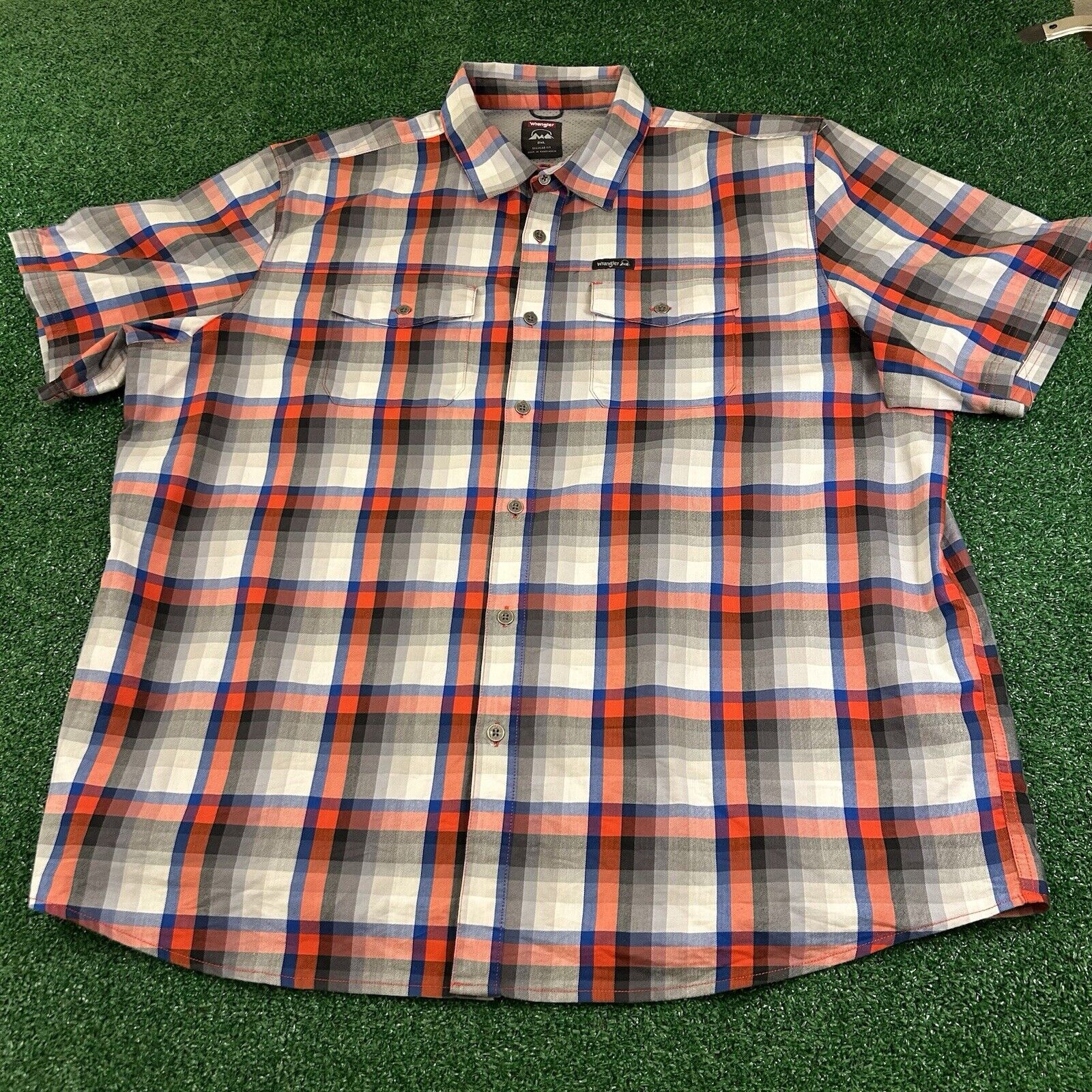 Wrangler Shirt Mens XXL 2XL Blue Red Gray Button Up Short Sleeve Flap Pockets